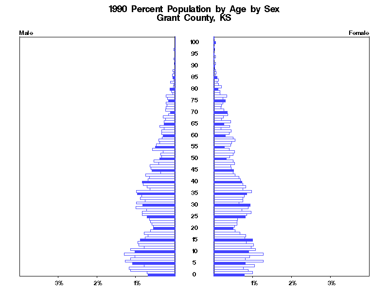 | Grant County, KS 1990 Population by Age by Sex | |||||