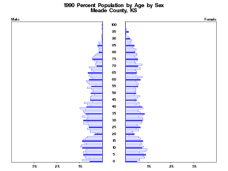 | Meade County, KS 1990 Population by Age by Sex | |||||