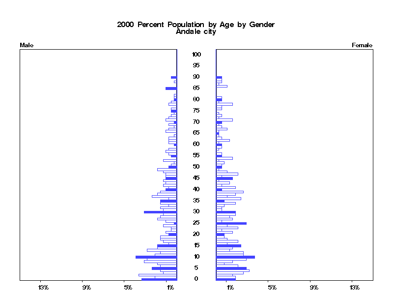| Andale city 2000 Population by Age by Gender | |||||