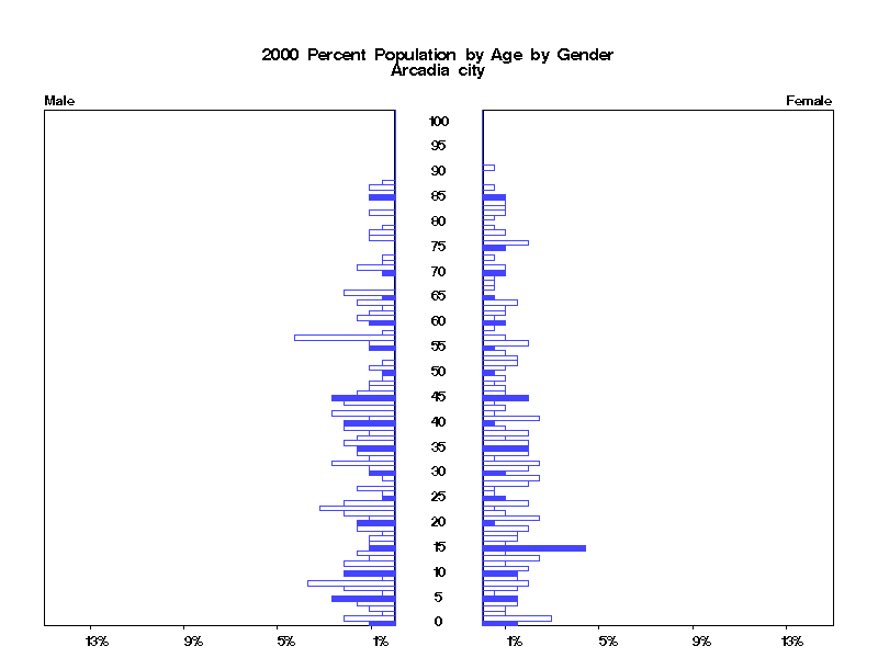| Arcadia city 2000 Population by Age by Gender | |||||