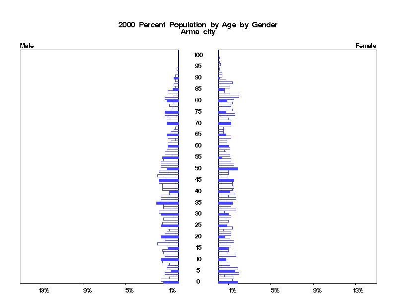 | Arma city 2000 Population by Age by Gender | |||||