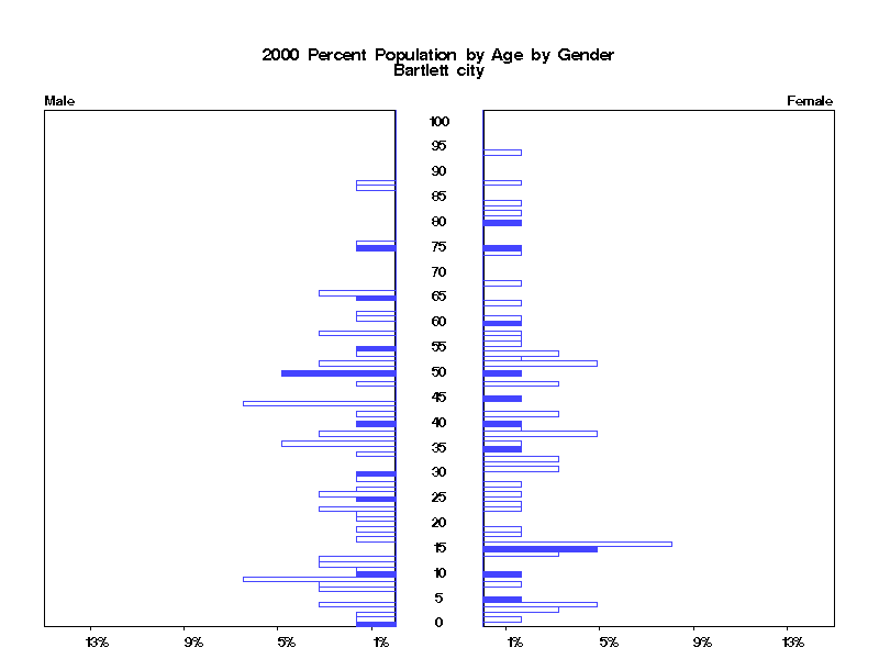 | Bartlett city 2000 Population by Age by Gender | |||||