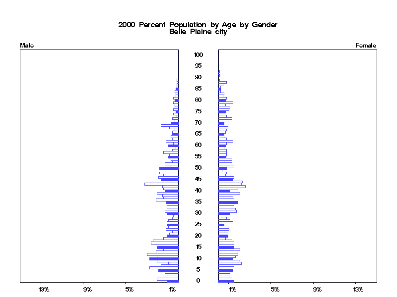 | Belle Plaine city 2000 Population by Age by Gender | |||||