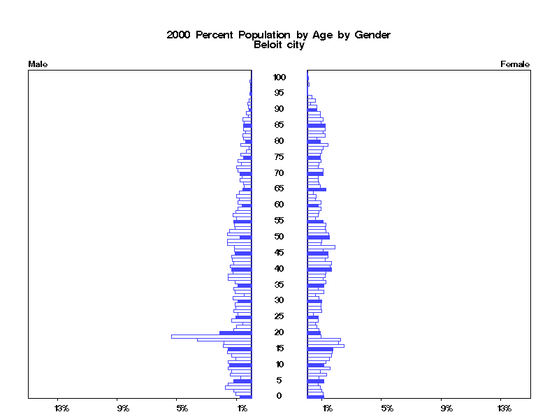| Beloit city 2000 Population by Age by Gender | |||||