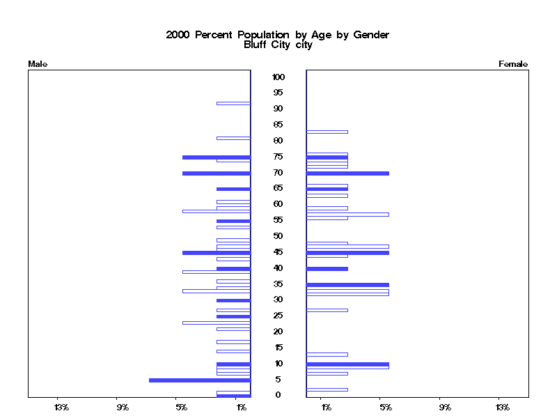 | Bluff City city 2000 Population by Age by Gender | |||||