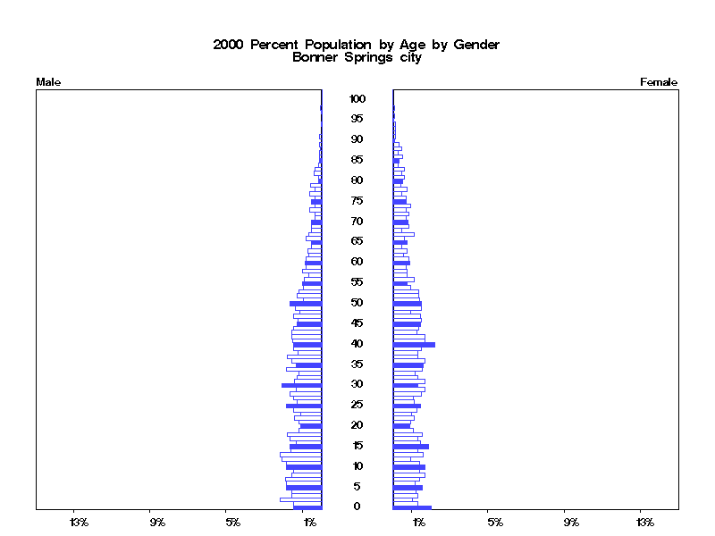 | Bonner Springs city 2000 Population by Age by Gender | |||||