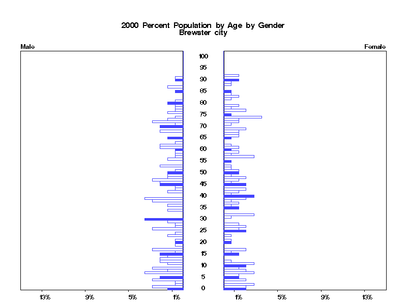 | Brewster city 2000 Population by Age by Gender | |||||