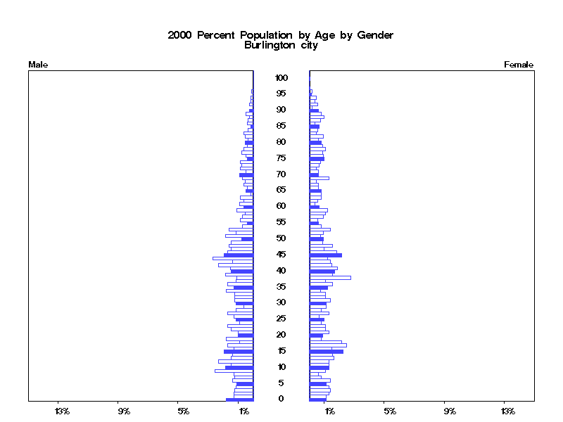 | Burlington city 2000 Population by Age by Gender | |||||