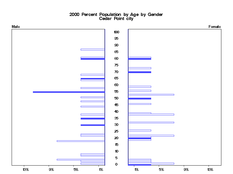 | Cedar Point city 2000 Population by Age by Gender | |||||
