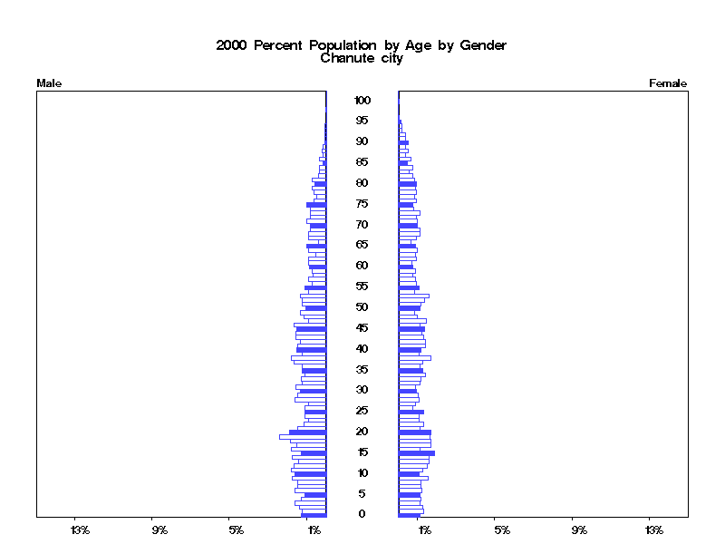 | Chanute city 2000 Population by Age by Gender | |||||