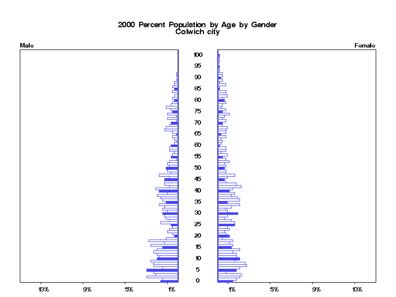 | Colwich city 2000 Population by Age by Gender | |||||