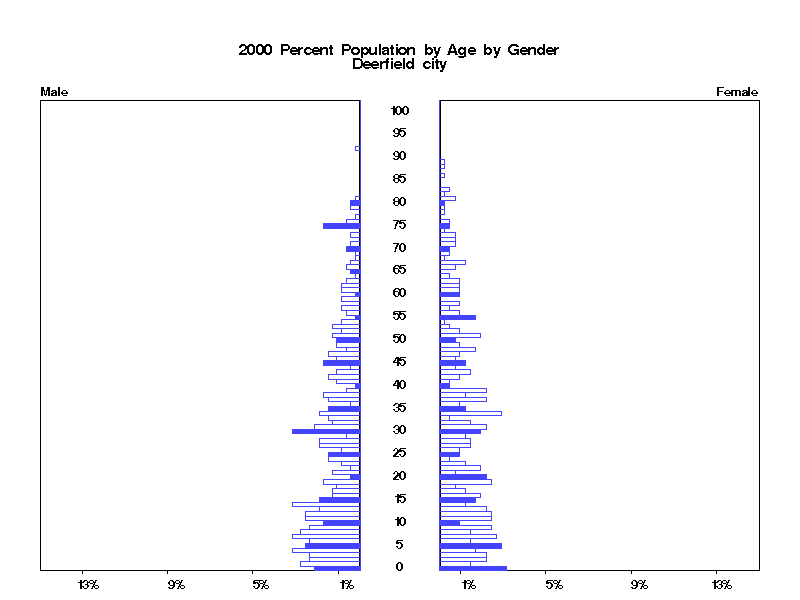 | Deerfield city 2000 Population by Age by Gender | |||||