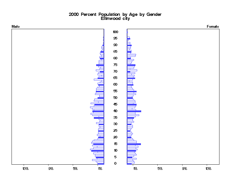 | Ellinwood city 2000 Population by Age by Gender | |||||