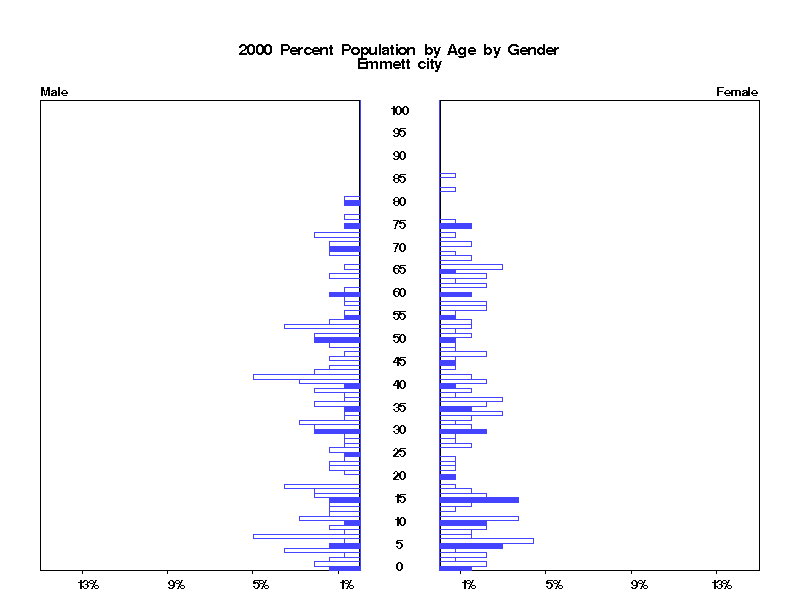 | Emmett city 2000 Population by Age by Gender | |||||