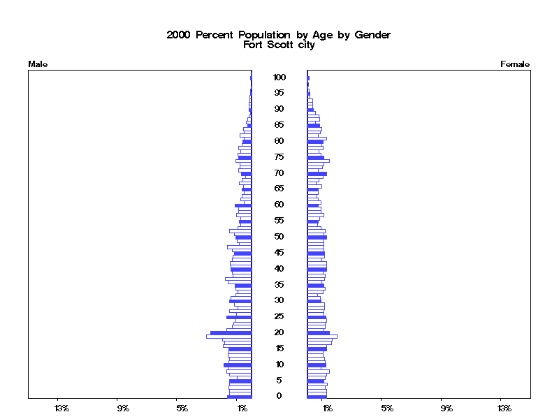 | Fort Scott city 2000 Population by Age by Gender | |||||