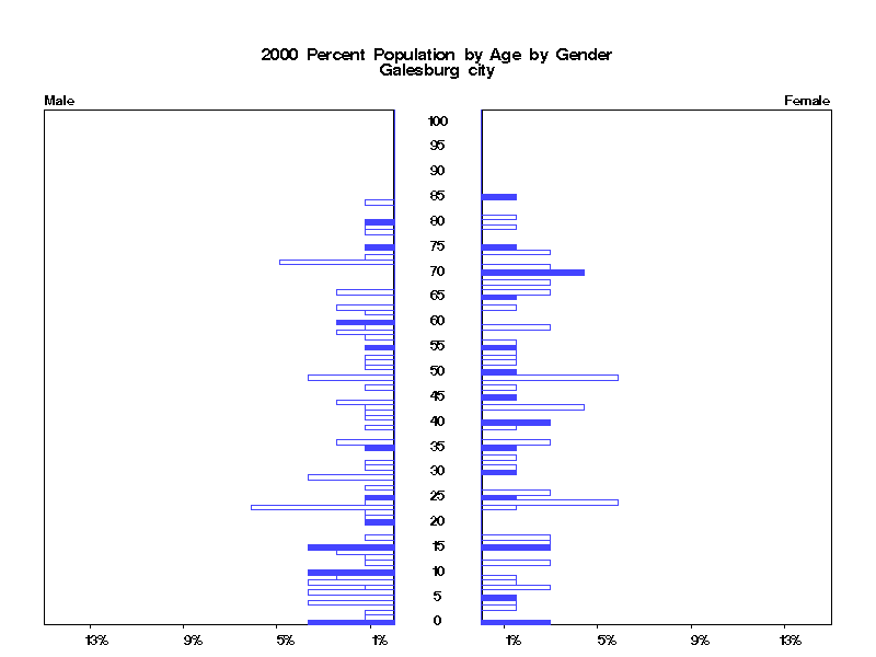 | Galesburg city 2000 Population by Age by Gender | |||||