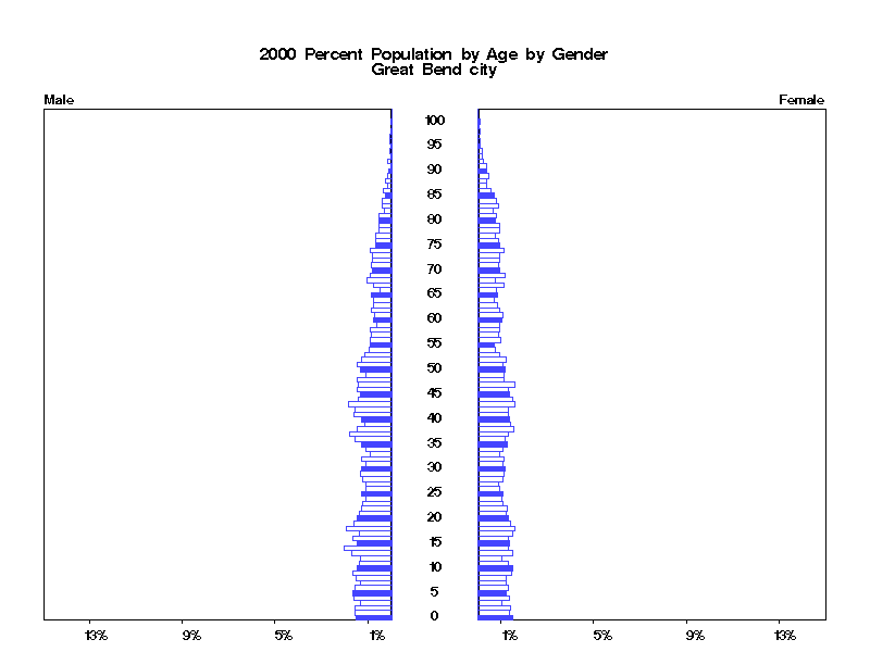 | Great Bend city 2000 Population by Age by Gender | |||||