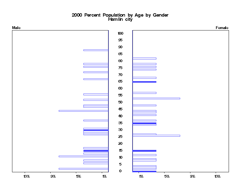 | Hamlin city 2000 Population by Age by Gender | |||||