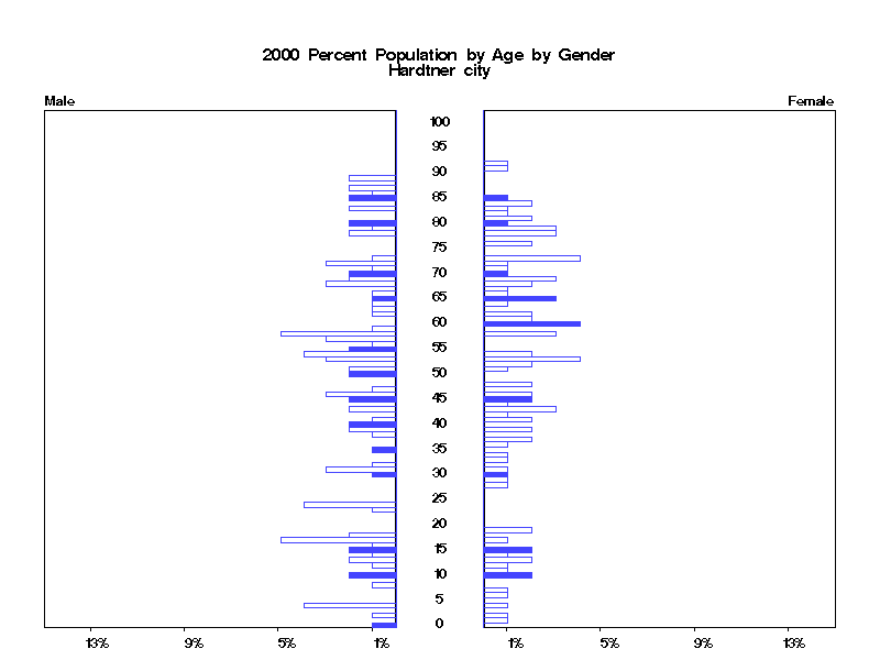 | Hardtner city 2000 Population by Age by Gender | |||||