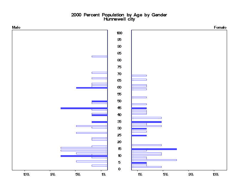 | Hunnewell city 2000 Population by Age by Gender | |||||