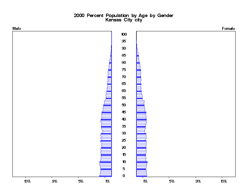 | Kansas City city 2000 Population by Age by Gender | |||||