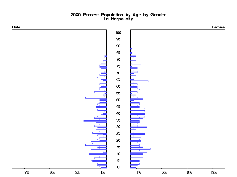 | La Harpe city 2000 Population by Age by Gender | |||||