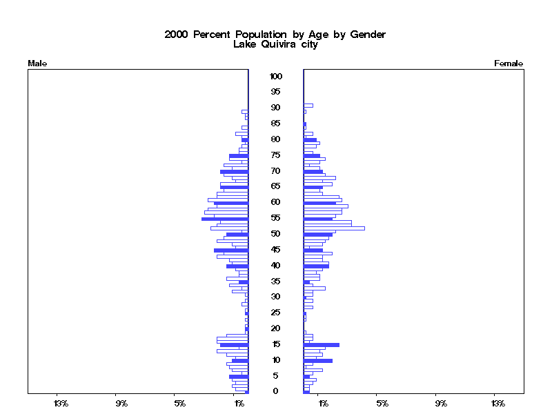 | Lake Quivira city 2000 Population by Age by Gender | |||||