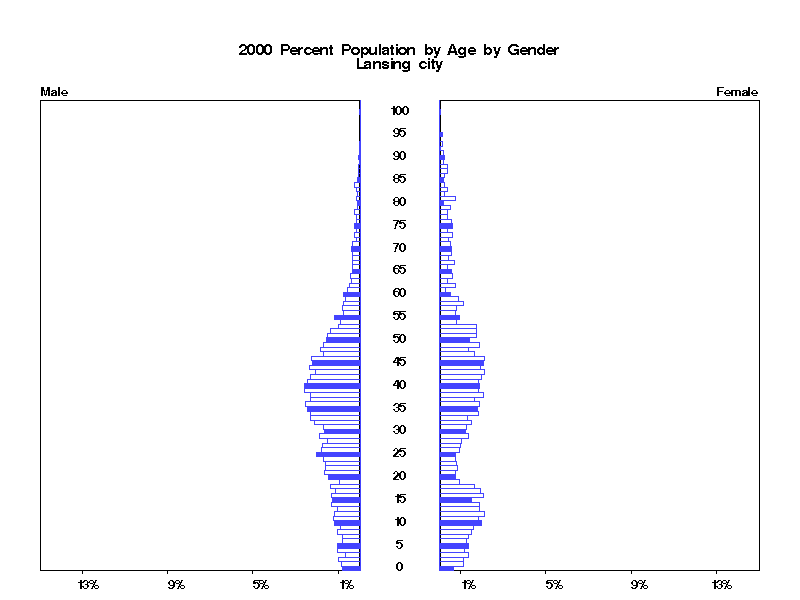 | Lansing city 2000 Population by Age by Gender | |||||