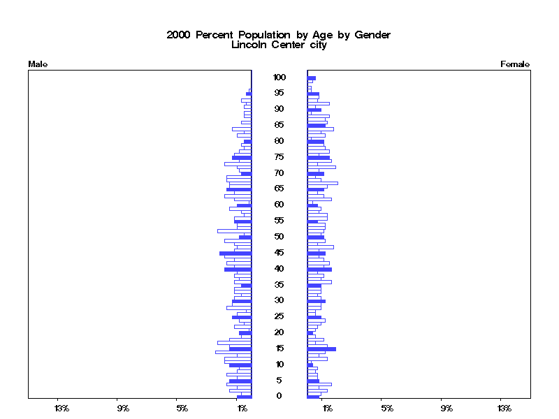 | Lincoln Center city 2000 Population by Age by Gender | |||||