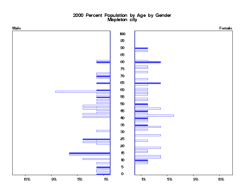 | Mapleton city 2000 Population by Age by Gender | |||||