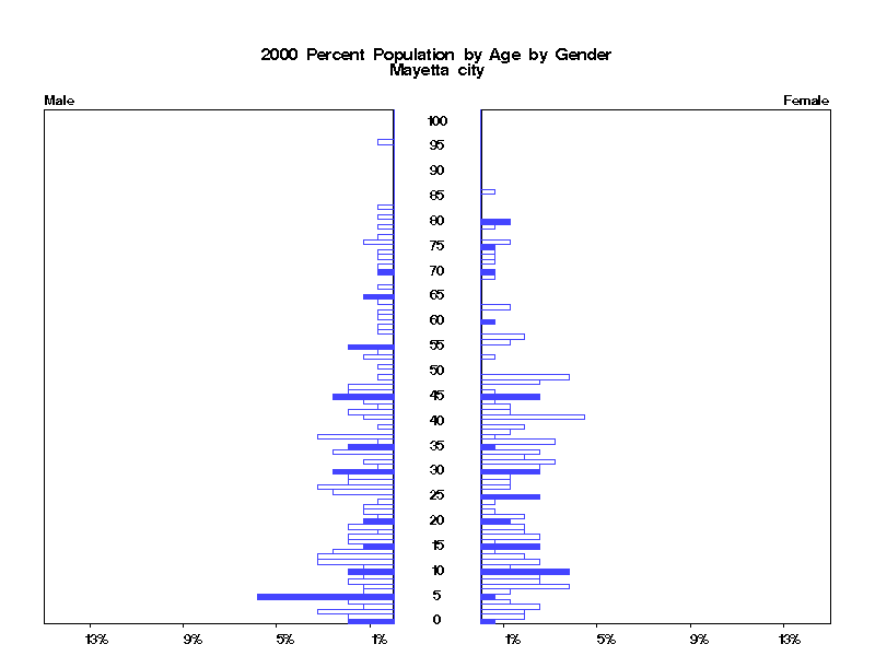 | Mayetta city 2000 Population by Age by Gender | |||||