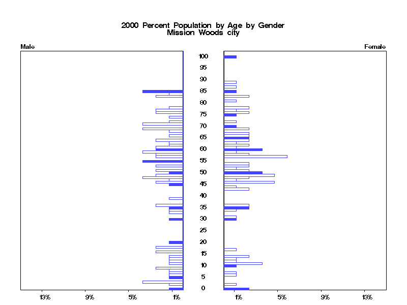 | Mission Woods city 2000 Population by Age by Gender | |||||