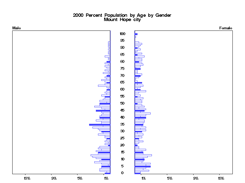 | Mount Hope city 2000 Population by Age by Gender | |||||