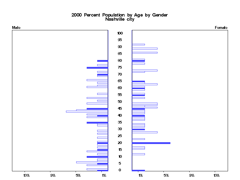 | Nashville city 2000 Population by Age by Gender | |||||