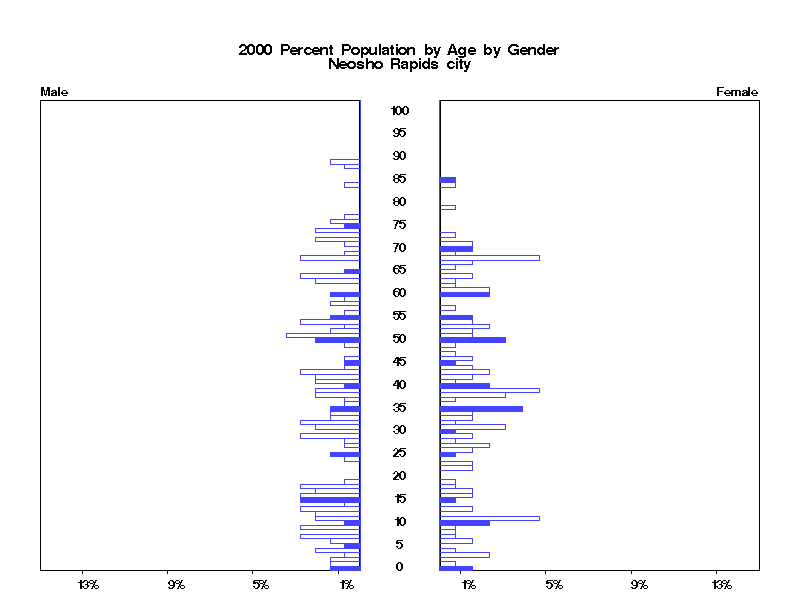 | Neosho Rapids city 2000 Population by Age by Gender | |||||