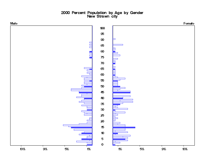 | New Strawn city 2000 Population by Age by Gender | |||||