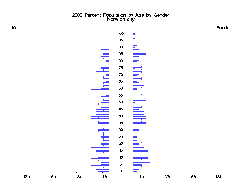 | Norwich city 2000 Population by Age by Gender | |||||