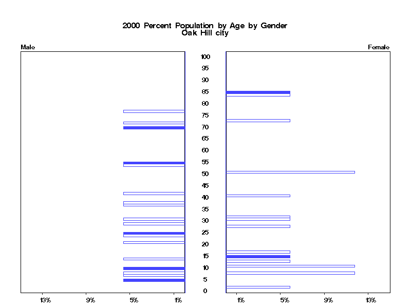| Oak Hill city 2000 Population by Age by Gender | |||||