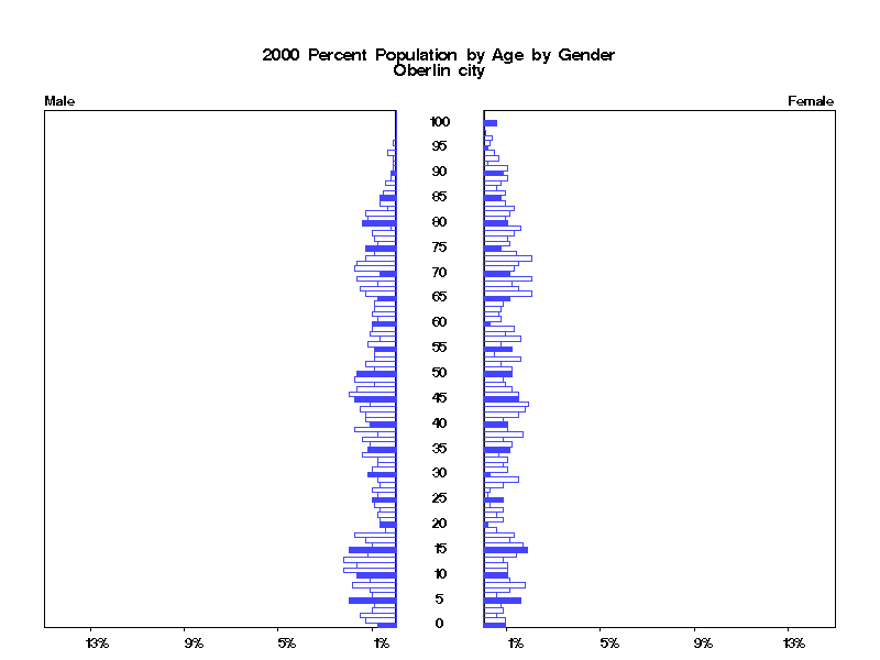 | Oberlin city 2000 Population by Age by Gender | |||||
