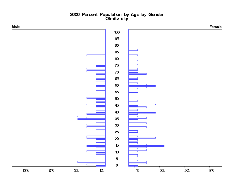 | Olmitz city 2000 Population by Age by Gender | |||||