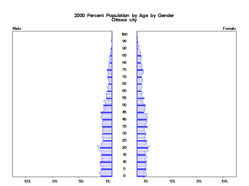 | Ottawa city 2000 Population by Age by Gender | |||||