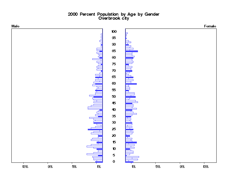 | Overbrook city 2000 Population by Age by Gender | |||||