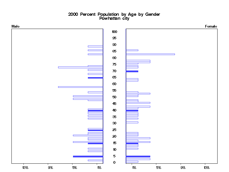 | Powhattan city 2000 Population by Age by Gender | |||||