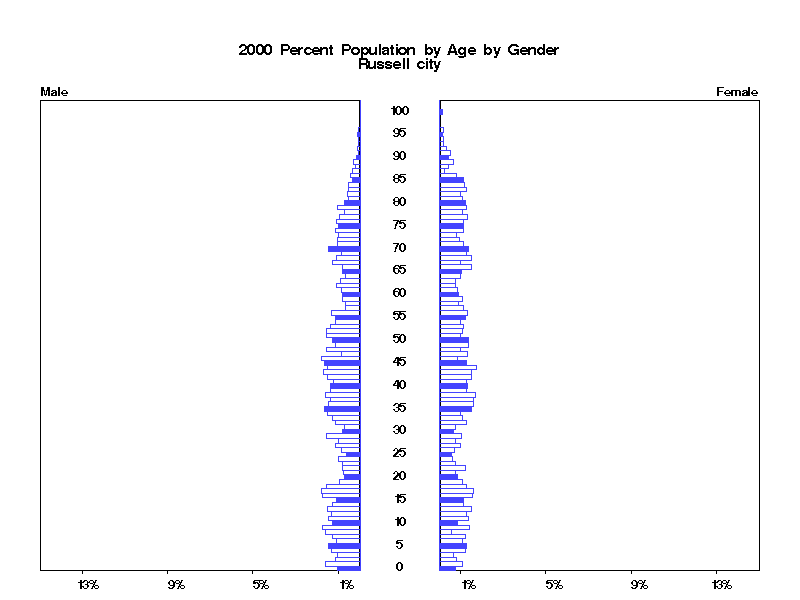 | Russell city 2000 Population by Age by Gender | |||||