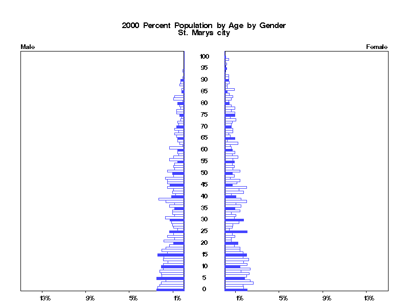 | St. Marys city 2000 Population by Age by Gender | |||||