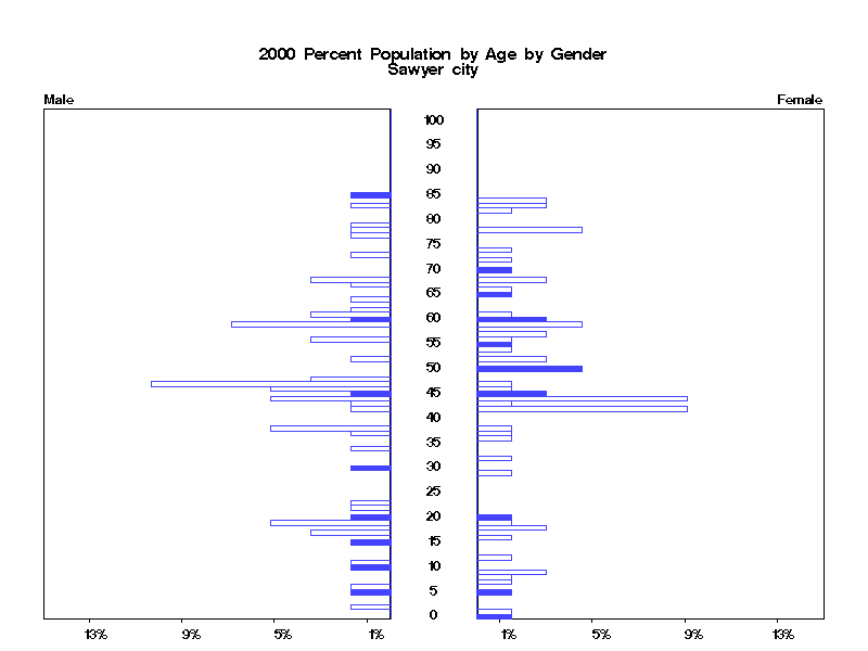 | Sawyer city 2000 Population by Age by Gender | |||||