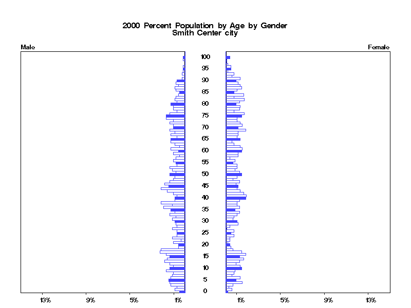 | Smith Center city 2000 Population by Age by Gender | |||||