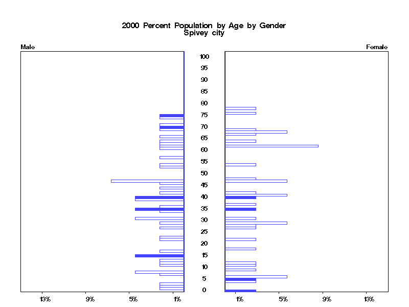 | Spivey city 2000 Population by Age by Gender | |||||