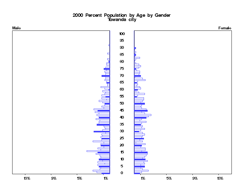 | Towanda city 2000 Population by Age by Gender | |||||