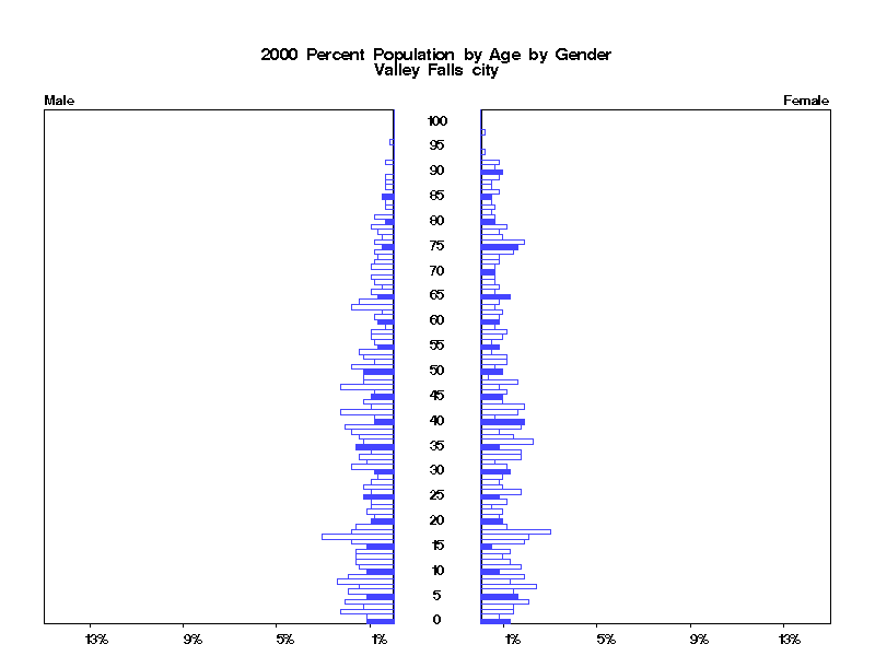 | Valley Falls city 2000 Population by Age by Gender | |||||